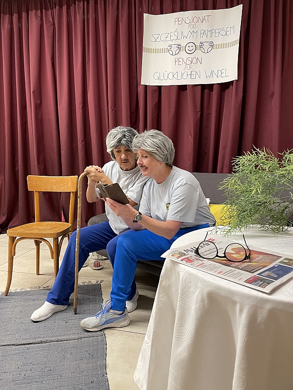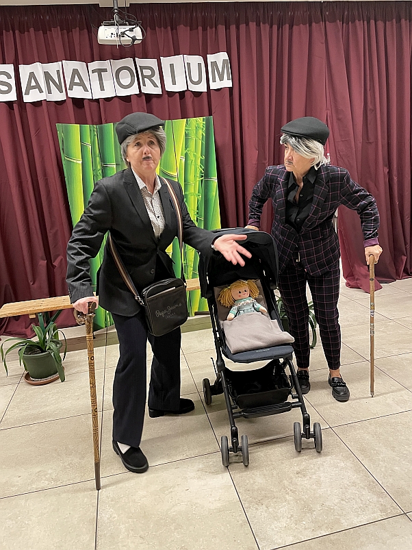 Die heutige Aufführung, basierend auf dem Drehbuch von Krzysztof Kokot, mit dem Titel „Schlüsselchen 2“, erzählte das weitere Schicksal zweier freundlicher Bewohner eines Altersheims, die uns aus dem ersten Teil bereits bekannt waren und die sich nach den Erschütterungen der Covid-Zeit zur Genesung in ein Sanatorium begeben.