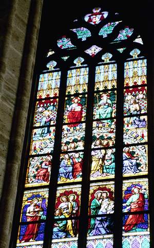 Süd-Ost Fenster, rechts vom Hochaltar; Beschriftung: