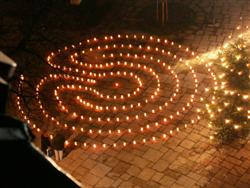 Im Advent 2004 gestalteten wir das erste Kerzenlabyrinth bei Adveniat am Platz vor der Othmarkirche. Dieses Labyrinth bestand aus Plastikbechern mit Kerzen - es war trotz der Beschwerung mit Schottersteinen sehr windanfällig.
