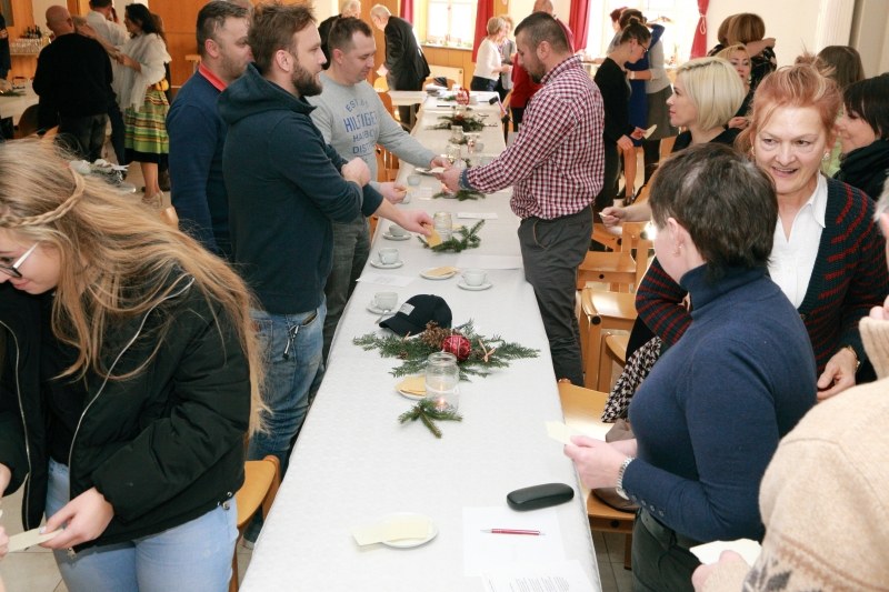 kolędami wprowadziła nastrój wigilijny w Sali parafialnej. Proboszcz