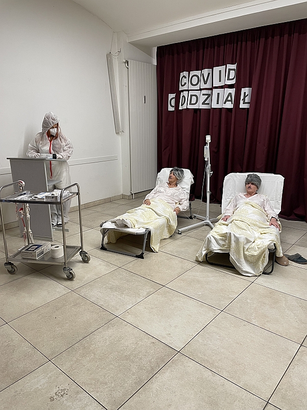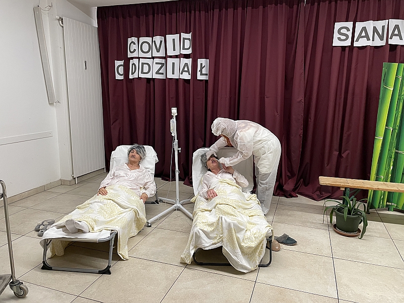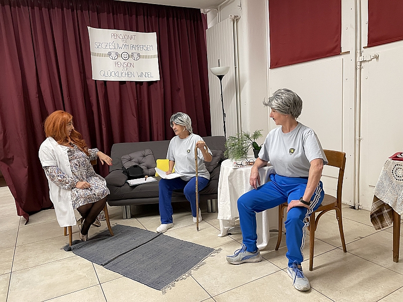 Die heutige Aufführung, basierend auf dem Drehbuch von Krzysztof Kokot, mit dem Titel „Schlüsselchen 2“, erzählte das weitere Schicksal zweier freundlicher Bewohner eines Altersheims, die uns aus dem ersten Teil bereits bekannt waren und die sich nach den Erschütterungen der Covid-Zeit zur Genesung in ein Sanatorium begeben.